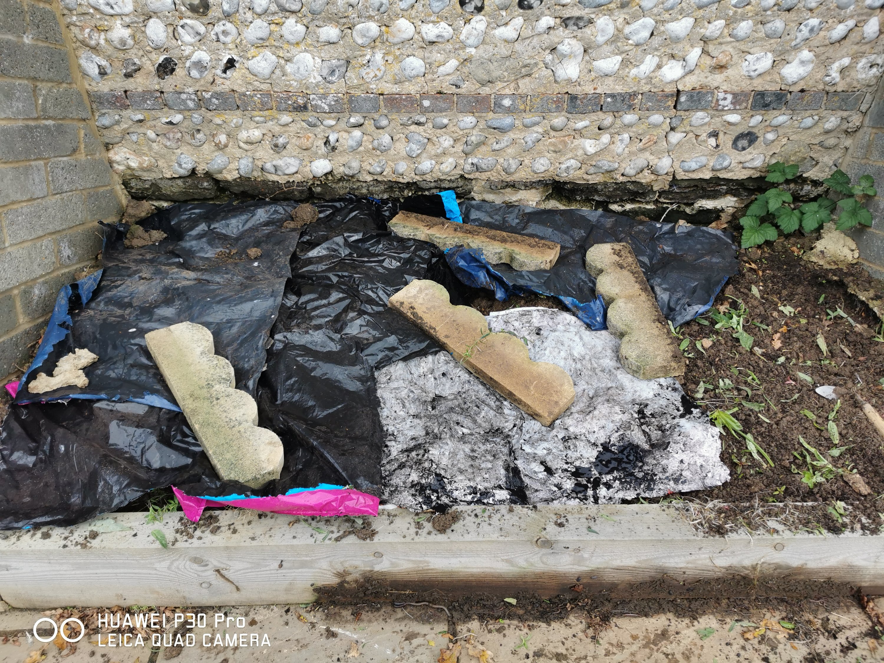 Clearing weed.. Sorry weeds.. and using left over compost bags to act as a weed barrier.. For eventual planting..