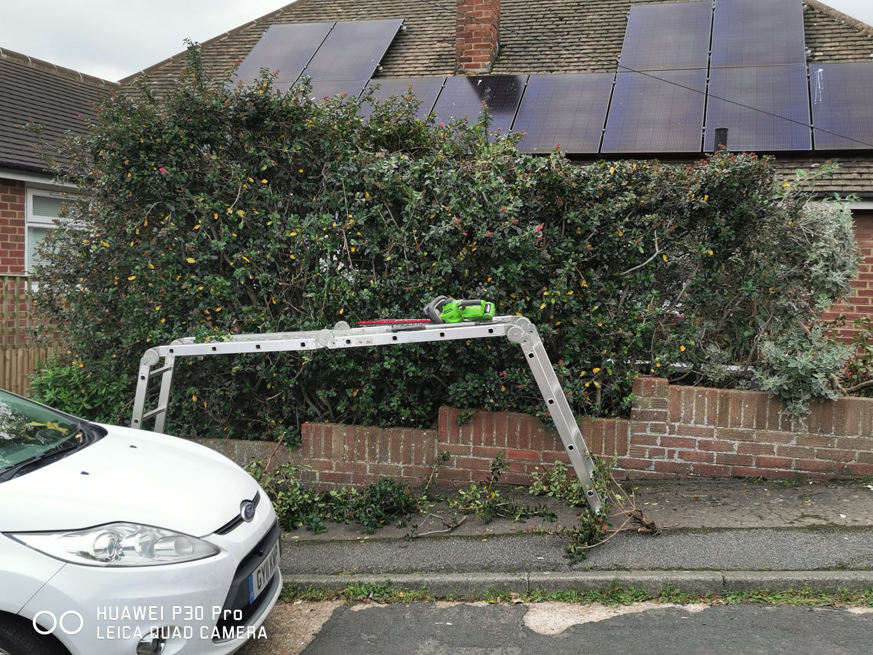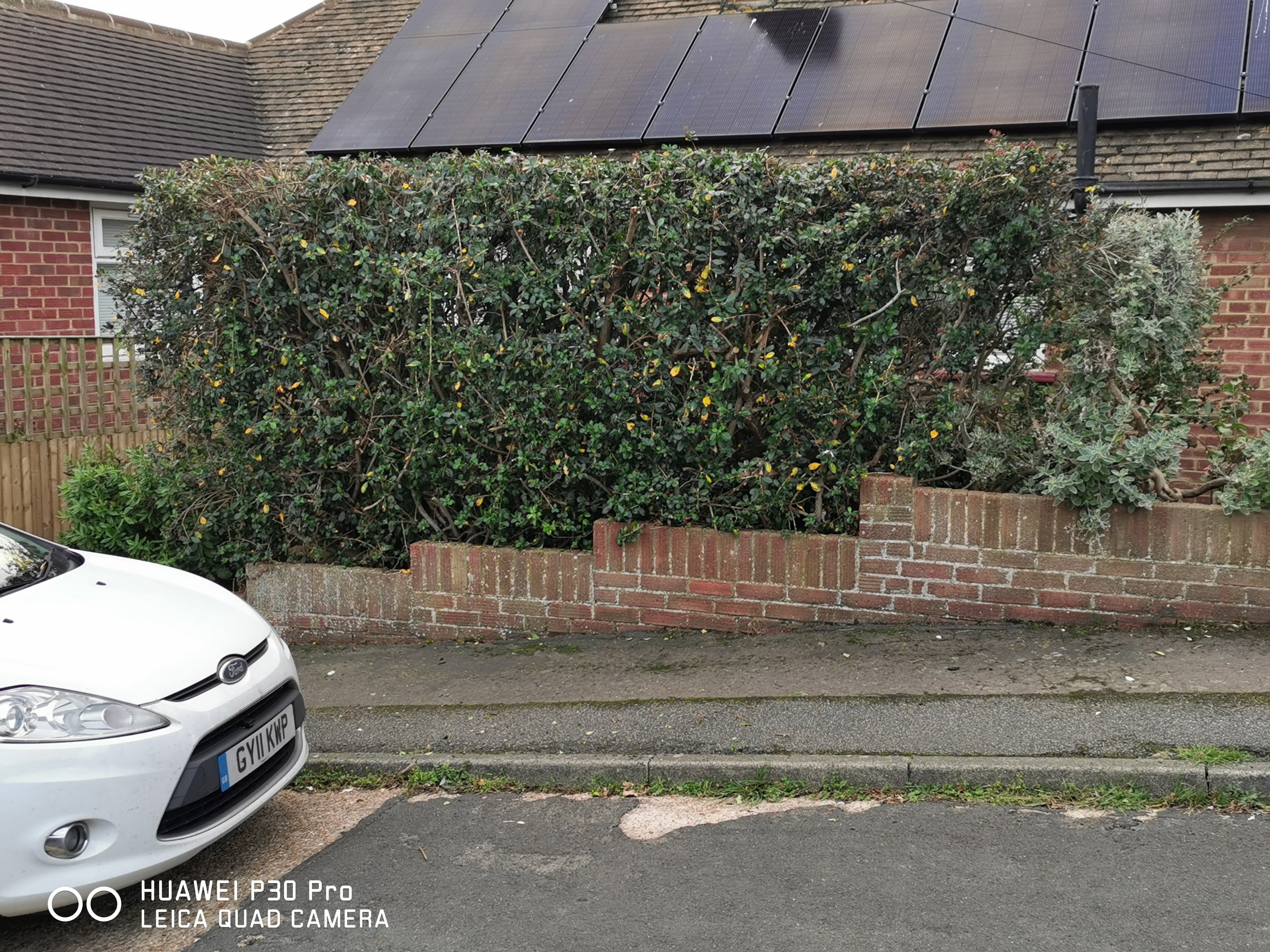 This hedge I reduced the width last year to get it off the pavement. Now it’s recovered, time to reduce the height