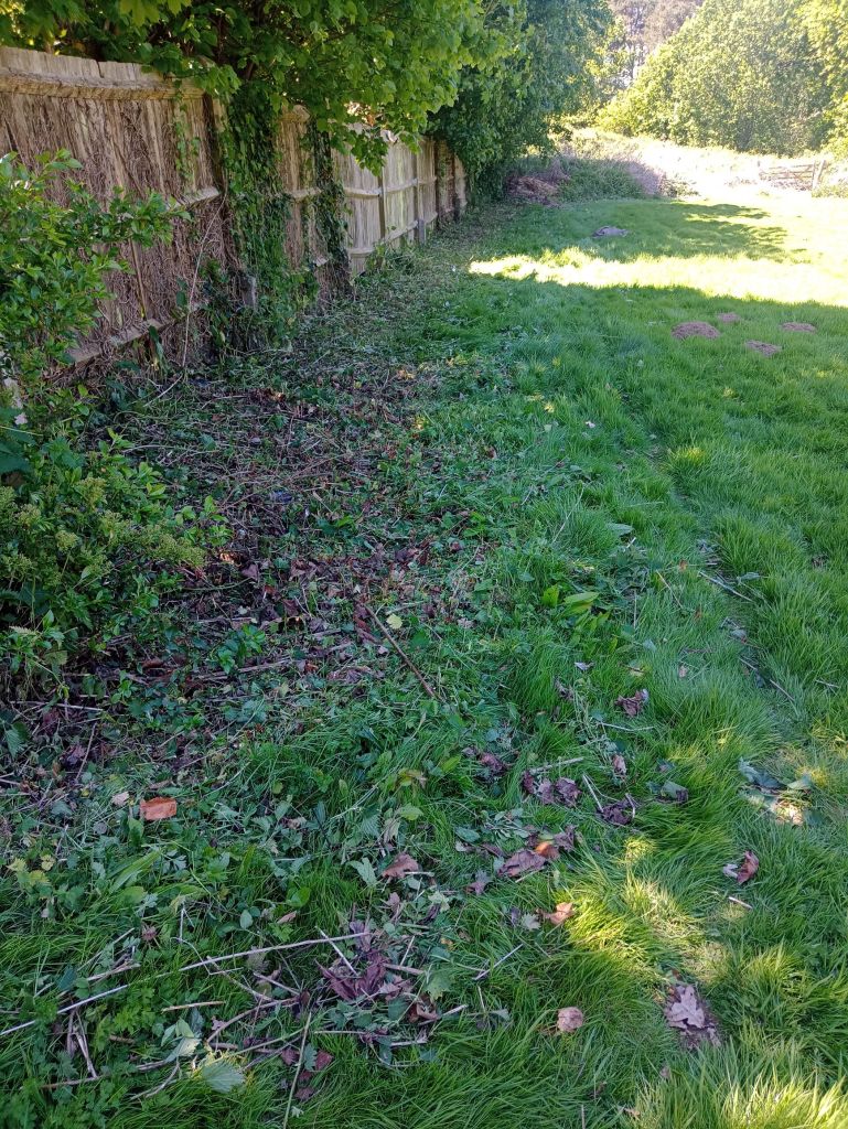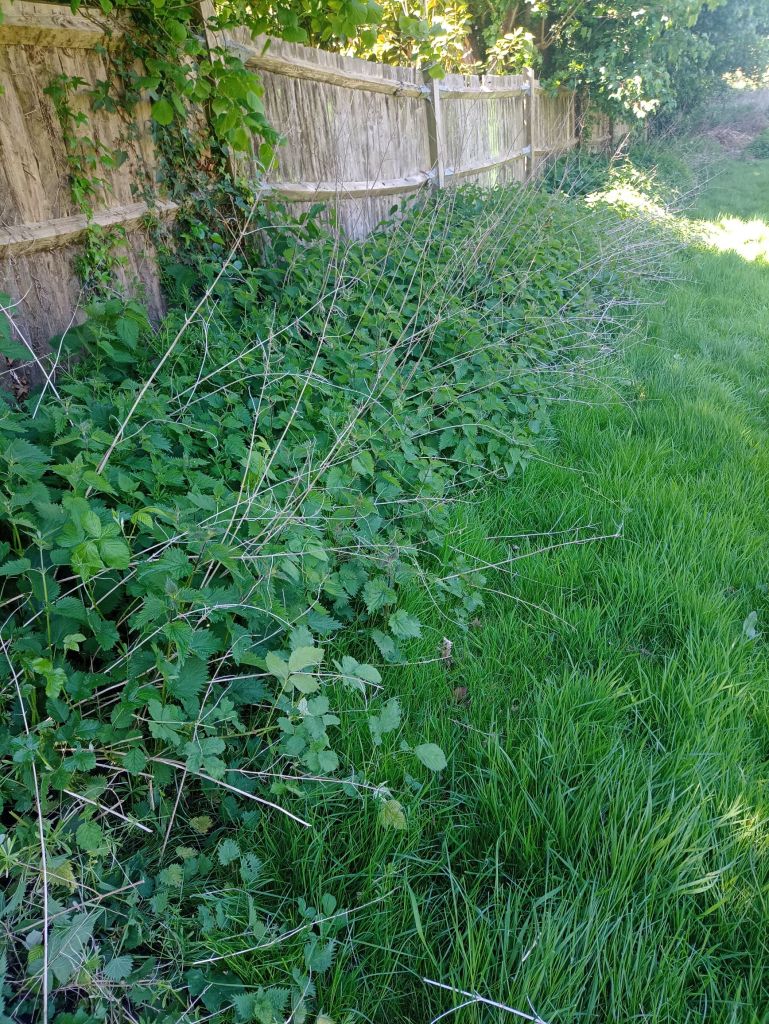 Some regular maintenance cutting lawns. Planting out dahlias. Stinging nettles have started to encroach from the fence line to the grass, so initially I’ve cut them back. Now they will regrow and weedkiller can be applied to the young fresh growth to kill them off
